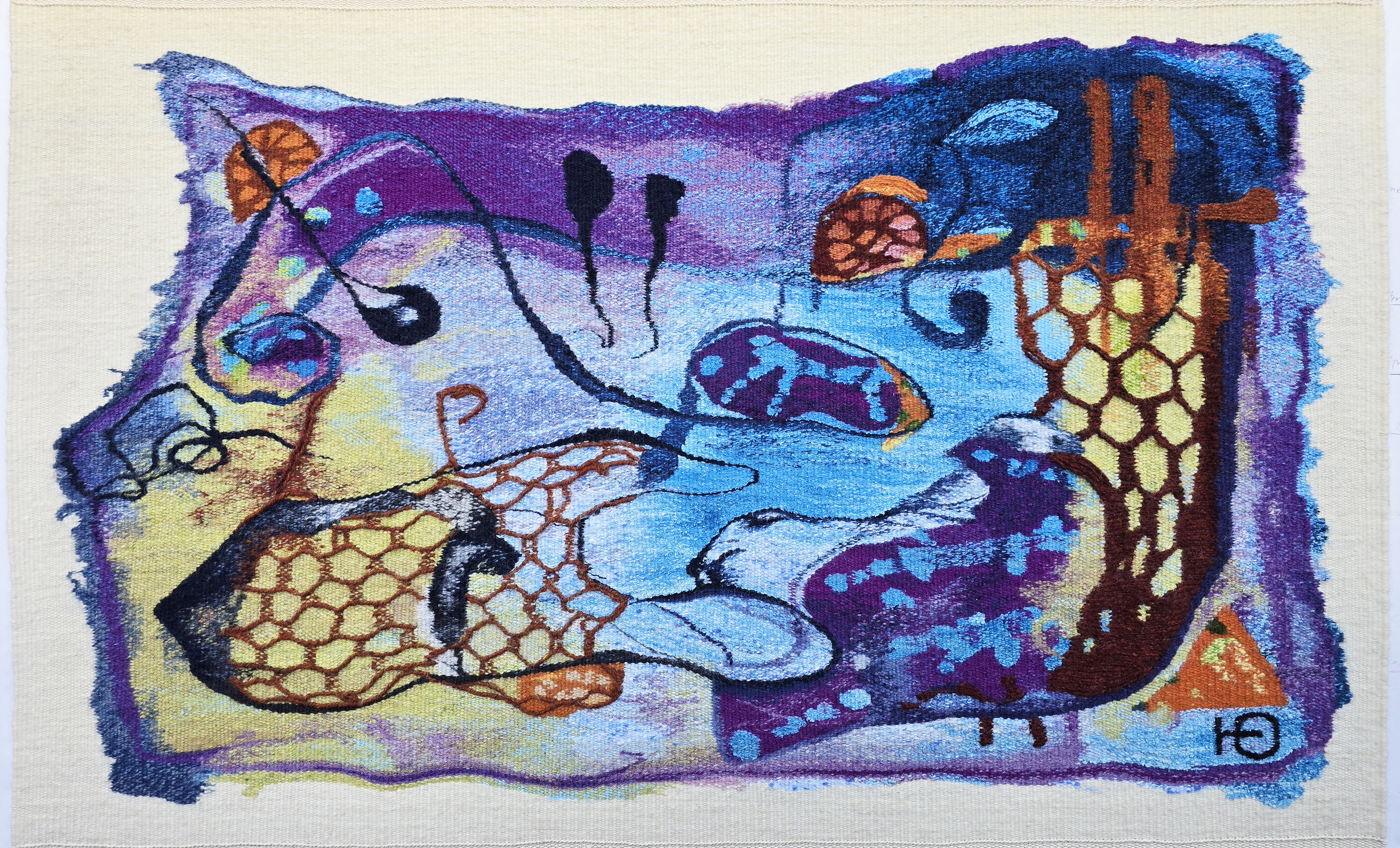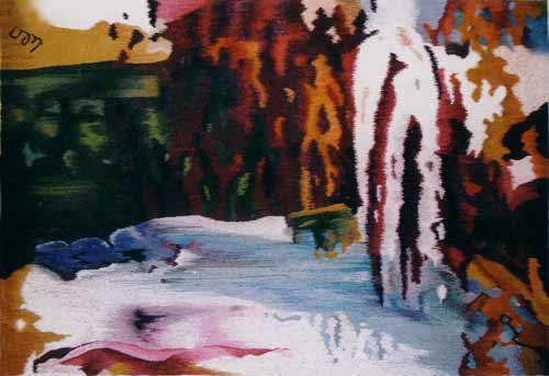 Wool, acrylic yarn on cotton warp- 39″ x 49″- 2005